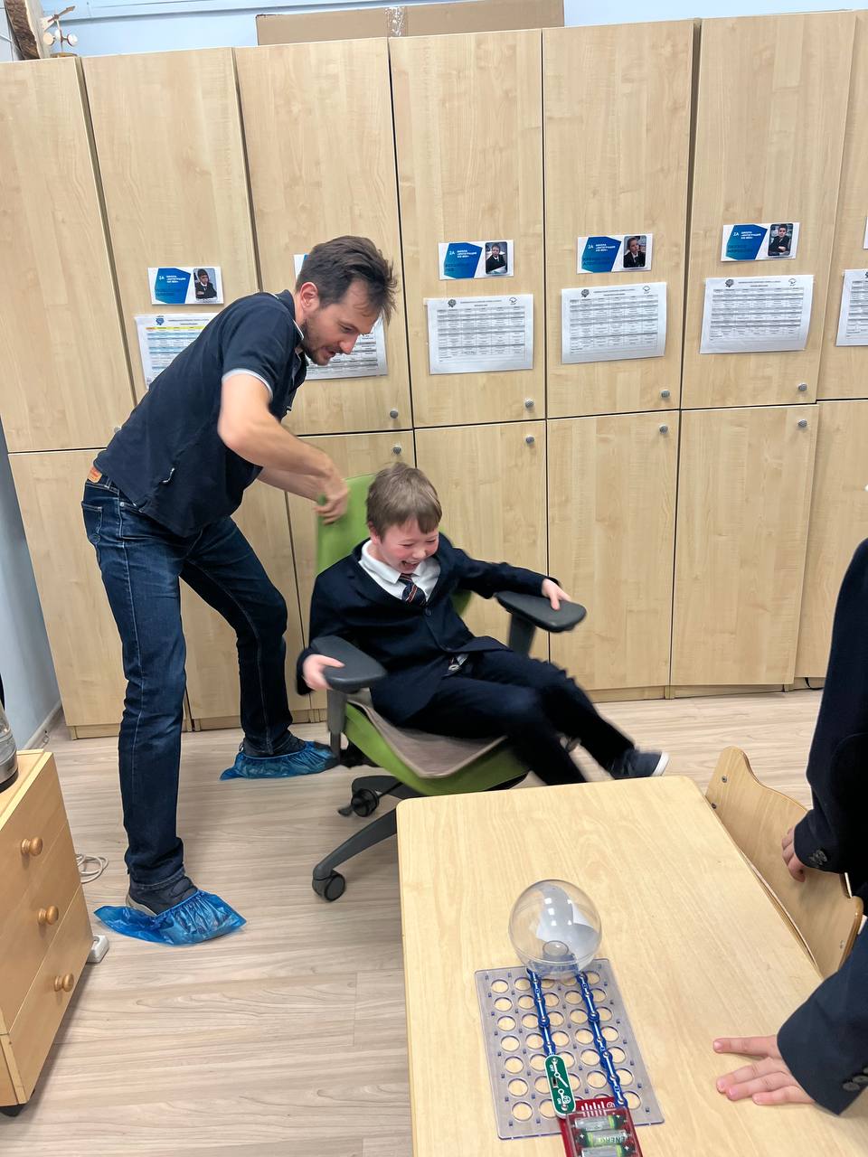 Большую роль сыграли прекрасно подготовленные наглядные материалы и практические элементы. Дети рассматривали модели, иллюстрации, даже смогли попробовать, как работает вестибулярный аппарат. Этот опыт напоминал аттракцион на крутящемся стуле, вызвал много эмоций и помог лучше понять, как организм реагирует на движение и равновесие.