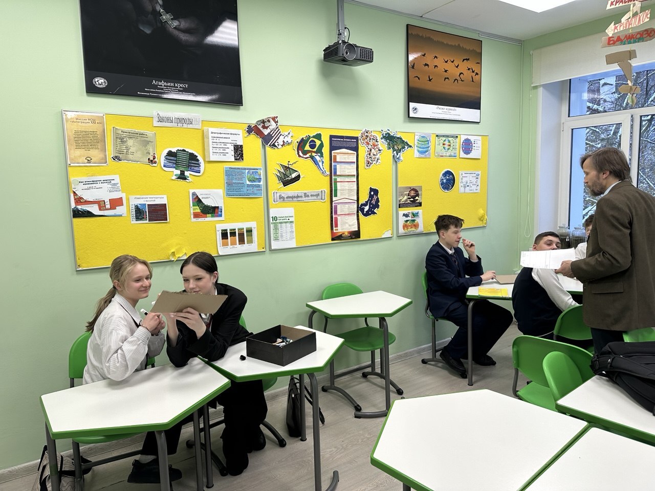 14 января в интеллектуальном поединке на Географической викторине скрестили свои «шпаги» две команды, созданные на базе 8 класса – БМ, в составе Сони Леонтьевой, Ксении Брайцевой и Влада Чистякова и ДТГД (аббревиатуры участники просили не раскрывать), в составе Артема Клюкина, Леонида Сидорина и Михаила Каурова. Соревнования проходили в несколько этапов, в ходе которых можно было по-разному проявить свои способности. В чем-то ребята заработали на креативе эмблем и названий своих команд, в чем-то – в блиц-соревновании по ориентированию в географических объектах мира. Однако основная баталия разыгралась на викторине «На просторах России», где нужно было не только хорошо знать этапы исторического развития территории Российской Федерации и особенности природных богатств России, но и уметь быстро и сплоченно выработать стратегию выбора лотов на табло викторины. В целом, битва команд прошла напряженно, весело и с большой отдачей, учащиеся показали, как общая работа мобилизует способности каждого.