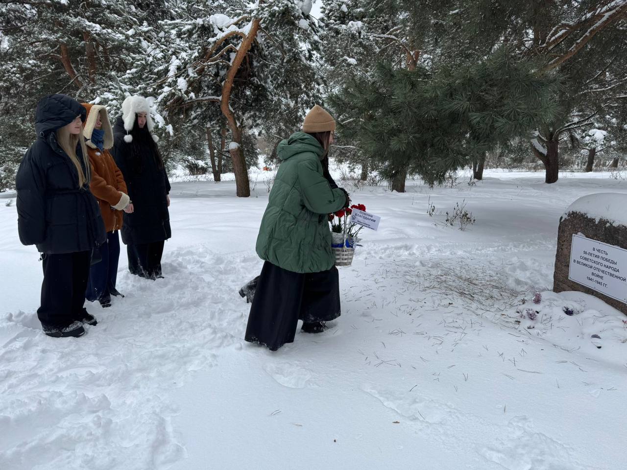 27 января учащиеся 10 класса школы «Интеграция XXI век» вместе с учителем истории и обществознания Петренко Петром Александровичем возложили цветы у мемориального камня в честь 50-летия Победы советского народа в Великой Отечественной войне. Возложение было приурочено ко Дню полного снятия блокады Ленинграда, который наша страна вспоминает каждый год 27 января.